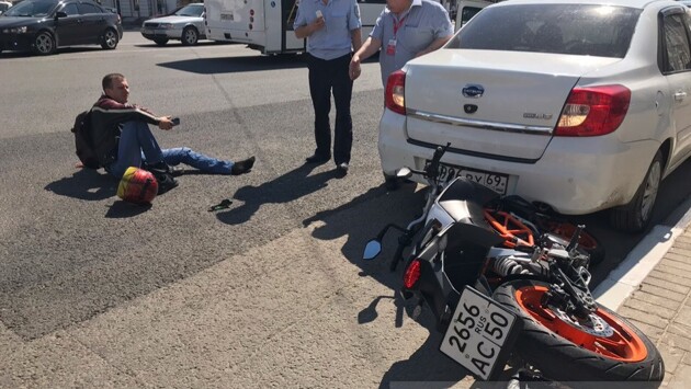 Это ДТП произошло 13 мая около 12:15 на тверском проспекте Твери. 31-летний водитель мотоцикла КТМ двигался со стороны центра в направлении железнодорожного вокзала. Попутно с ним ехал автомобиль "Шевроле Авео". При повороте налево, в сторону бульвара Радищева, водитель иномарки не увидел мотоциклиста, в результате чего произошло столкновение. От удара мотоцикл отбросило под рядом припаркованный "Datsun", а сам байкер упал на дорогу. Мужчина получил травмы, на место происшествия вызвали скорую помощь и инспекторов ГИБДД.