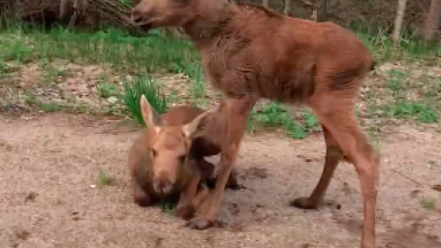 ВЛенобласти водитель помог лосятам перейти дорогу навстречу матери