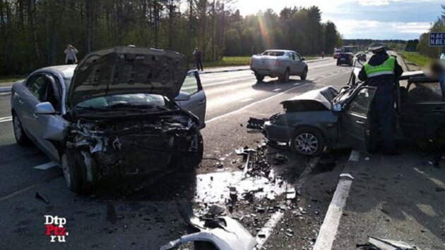 Два легковых автомобиля в лобовую столкнулись перед деревней Бесовец