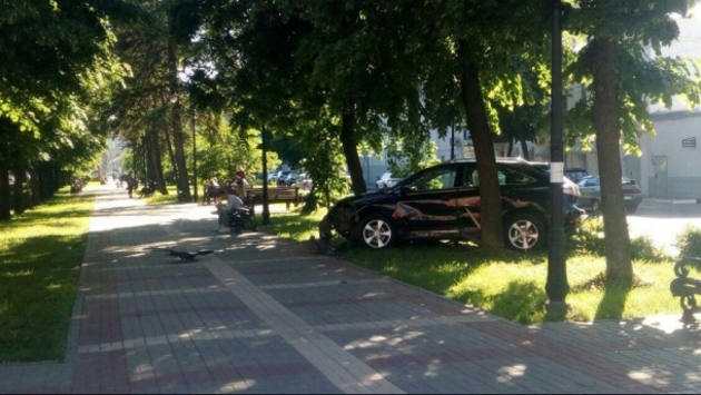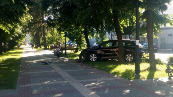 В центре Воронежа иномарка при ДТП снесла забор и вылетела в сквер