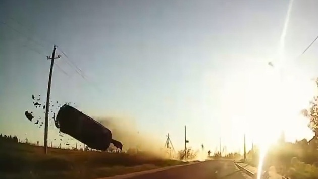 Впечатляющий полет легковушки в Подмосковье попал на видео