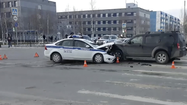 Три человека пострадали в аварии с патрульным автомобилем ДПС в Муравленко. ВИДЕО