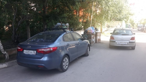В Воронеже из-за припаркованных машин снова не смогли вывезти мусор