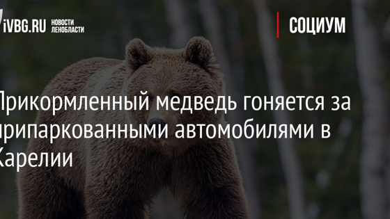 Прикормленный медведь гоняется за припаркованными автомобилями в Карелии