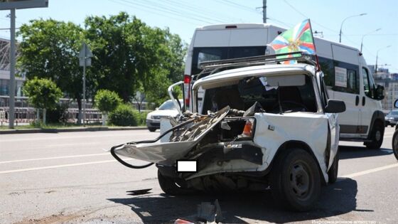 Испортили праздник: Иномарка протаранила автомобиль с празднующими пограничниками в центре города