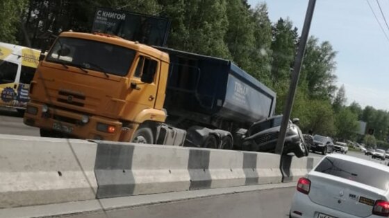 Грузовик вытолкнул Infiniti на разделитель посередине Бердского шоссе