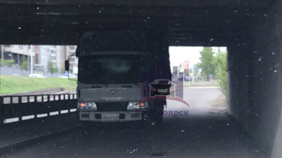 В Красноярске на дороге под пролетом Октябрьского моста застрял грузовик, который оказался слишком высоким. Фотографии с места инцидента опубликованы в группе «ЧП Красноярск» во «ВКонтакте». На кадрах видно, что от удара о конструкцию кузов фуры смялся, и она прочно застряла под мостом. Один из комментаторов посоветовал водителю спустить колеса и проехать так оставшийся отрезок под мостом. Неизвестно, как тот вышел из затруднительного положения. Пользователи соцсети окрестили это место «Мостом глупости», проводя параллели с легендарным мостом в Санкт-Петербурге. Несмотря на предупреждающую табличку «"Газель" не проедет», на его счету уже около 200 пойманных грузовиков.