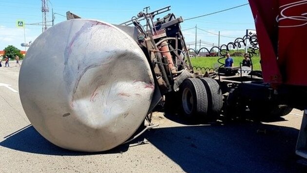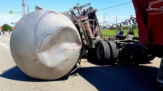 На Кубани грузовик врезался в "Жигули" и потерял цистерну