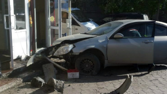 В Новосибирске автомобиль Nissan протаранил киоск с шаурмой