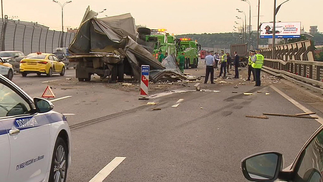 В Москве "КамАЗ" врезался в отбойник и перекрыл движение на ТТК