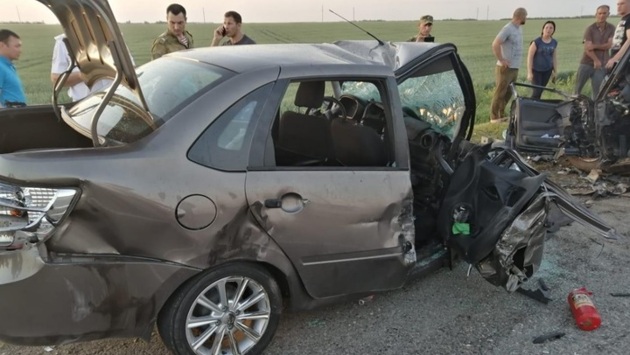 В Сети опубликованы кадры с регистратора очевидца, запечатлевшего момент серьезного дорожно-транспортного происшествия, произошедшего вечером в минувший четверг, 30 мая, в районе города Георгиевска в Ставропольском крае. Водитель автомобиля "Лада Гранта" попытался совершить обгон, однако по какой-то причине проигнорировал наличие встречного автомобиля. После выезда на "встречку" от столкнулся с Hyundai Sonata и "ВАЗ-2114". Как сообщают СМИ, на месте аварии погибли два человека – пассажир "Гранты" и водитель "четырнадцатой". В больнице оказались четыре человека – водитель Hyundai, состояние которого оценивается как тяжелое, предполагаемый виновник ДТП, управлявший "Грантой", и его пассажиры.