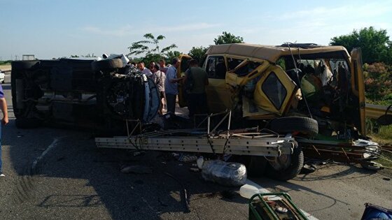 ДТП на трассе в Крыму: иномарка влетела в стоящий микроавтобус