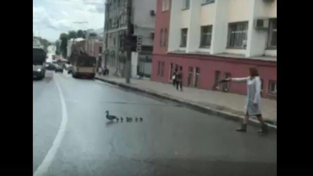 В Кирове водители остановили движение, чтобы пропустить утку с утятами