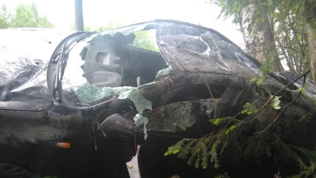 В Пермском крае автомобиль выбросило с трассы после тарана. Видео