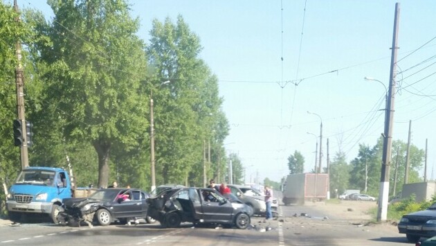 На Московском шоссе столкнулись три машины, три человека пострадали