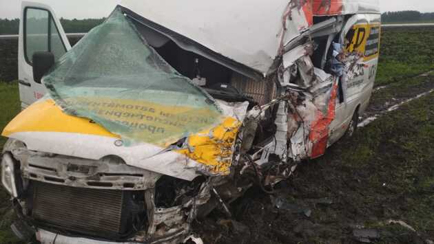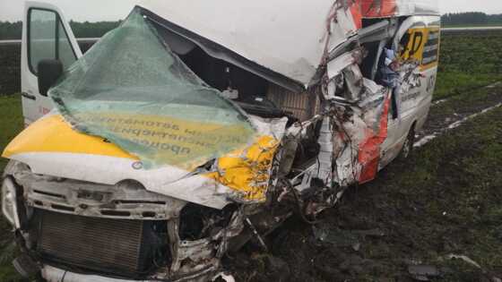 Микроавтобус врезался в два грузовика на трассе Тюмень-Омск