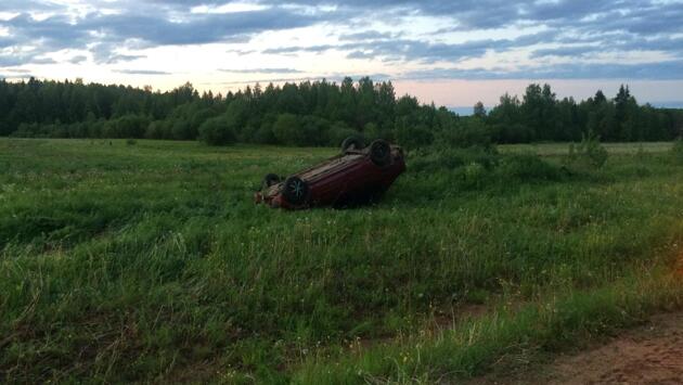 Иномарка опрокинулась в Удмуртии из-за выбежавшего на дорогу зайца