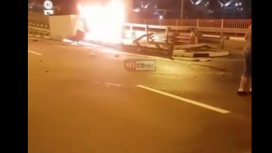 В Сочи ГАЗель влетела в дорожное ограждение и сгорела