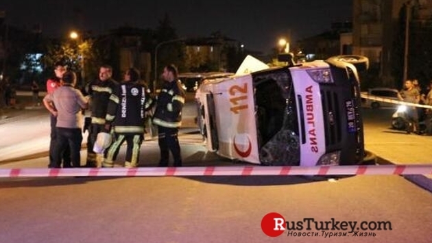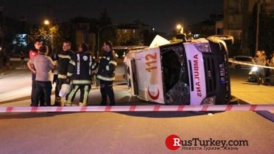 В городе Денизли на юго-западе Турции в ДТП разбился автомобиль скорой помощи, сообщают турецкие СМИ 13 июня 2019 года. Ранены 7 человек, в том числе ребенок. Авария произошла накануне вечером в районе Меркезефенди города Денизли. На перекрестке в районе улицы 415 легковой автомобиль столкнулся с машиной скорой помощи. От удара «скорая» перевернулась и проехала еще несколько метров по дороге. В результате ДТП пострадали оба водителя скорой помощи, два медика и пациент. В легковом автомобиле ранены женщина и 8-летний ребенок. На место прибыли полиция, пожарные и несколько машин скорой помощи. Все раненые были доставлены в городскую больницу Денизли. Сообщается, что все пострадавшие живы и находятся на лечении. Полиция начала расследование причин аварии.