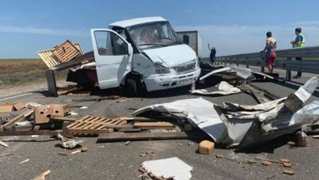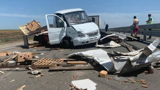 Об этом сообщают очевидцы, на трассе "Таврида" в районе пгт. Приморский, по неизвестной причине столкнулись грузовой автомобиль "ГАЗель", перевозивший хлеб и самосвал "Mercedes".В результате аварии оба автомобиля получили серьезные повреждения. В частности, у самосвала выбито лобовое стекло и отлетело колесо, "ГАЗель" лишилась кузова. Официальной информации о происшествии пока нет. Причины ДТП и данные о пострадавших уточняются.