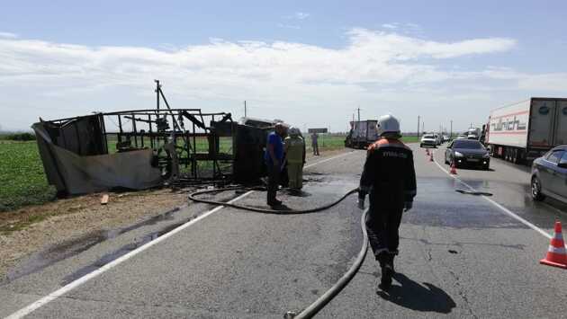 Две грузовые машины столкнулись на трассе в Краснодарском крае из-за осы