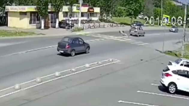 Пьяный угонщик сбил пешехода на "зебре". Видео