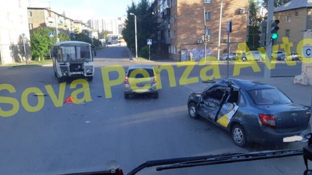 В Пензе из-за ДТП автобус «ПАЗ» вмял двери в салон автомобиля такси