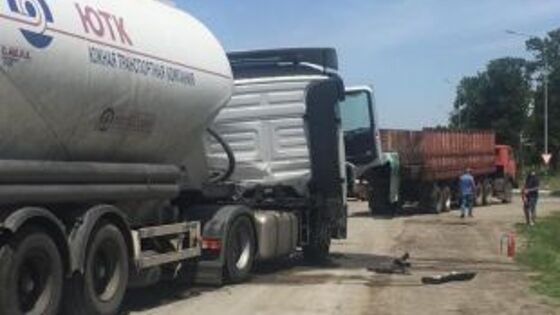 На дороге между Невинномысском и Ставрополем попутно столкнулись два тяжеловоза, сообщает пресс-служба краевого управления ГИБДД. По предварительной информации, седельный тягач Mercedes не выдерживал безопасной дистанции, двигаясь за КамАЗом, и «догнал» его. От столкновения сам же водитель иностранного большегруза и пострадал. Его отвезли в Невинномысскую ЦРБ. У него травмы средней степени тяжести. Авария произошла около 10 часов 20 минут на 233 км трассы «Кавказ». Все обстоятельства уточняются. Видео аварии распространяют в социальных сетях. По мнению комментаторов, в происшествии могла быть виновата жара, которая притупляет бдительность водителей. Многие также удивляются, почему грузовики ездят днём, если в крае ввели запрет на дневное движение фур.