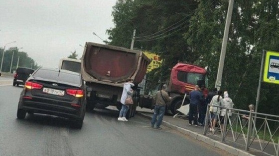 ДТП произошло около 9:55 на 26-м километре автодороги Парголово – Огоньки. Водитель, управляя грузовиком, совершил касательное столкновение с автобусом № 555. От удара он выехал на остановку.