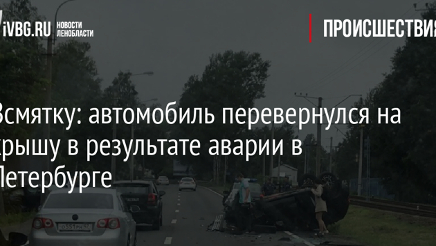 Всмятку: автомобиль перевернулся на крышу в результате аварии в Петербурге