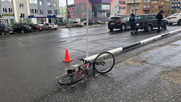 В Ноябрьске несовершеннолетний велосипедист попал под колеса автомобиля. ФОТО