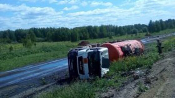 На трассе Пермь – Екатеринбург перевернулся грузовик с нефтью