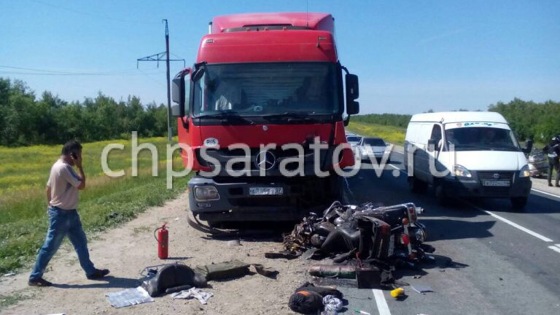 Стало известно о смертельном дорожно-транспортном происшествии на автотрассе Сызрань-Саратов-Волгоград. Байкер из мотоколонны, которая, по предварительным данным, направлялась из Оренбурга в Краснодарский край, столкнулся с грузовиком. Мужчина 1972 года рождения, ехавший на мотоцикле «Harley-Davidson», не справился с управлением, выехав на встречную полосу, где столкнулся лоб в лоб с грузовиком Mercedes. Мотоциклист скончался на месте до прибытия врачей скорой помощи. Сотрудники правоохранительных органов проводят проверку по факту случившегося. Фото с сайта chpsaratov.ru