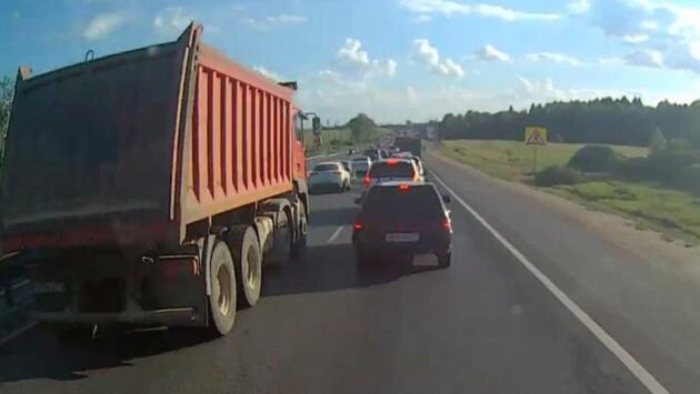 Два человека пострадали в результате массовой аварии на трассе под Сергиевым Посадом в Подмосковье, где столкнулись 11 автомобилей. Камера регистратора зафиксировала момент столкновения. Авария произошла около семи часов вечера 18 июня на 59-м километре Ярославского шоссе, близ поворота на село Радонеж. На кадрах видно, как потерявший управление грузовик врезается и сносит вставшие на светофоре легковушки. По данным инспекторов, самосвал повредил 10 машин. По предварительной информации, у него отказали тормоза. Помощь медиков потребовалась двум пострадавшим, но от госпитализации они отказались.