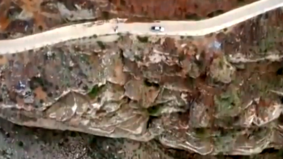В Китае водитель упал со 150-метровой скалы, но он выжил, повиснув на дереве. Видео