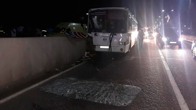 В Адлере рейсовый автобус протаранил бетонный отбойник: кадры с места