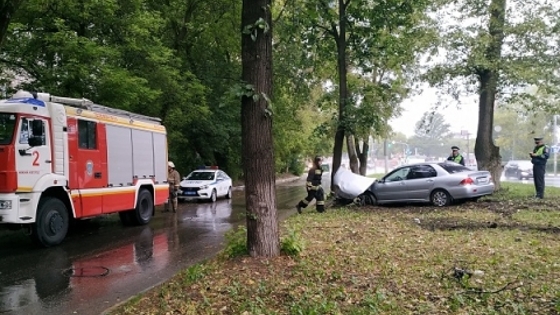 Иномарка протаранила столб и маршрутку в Нижегородском районе