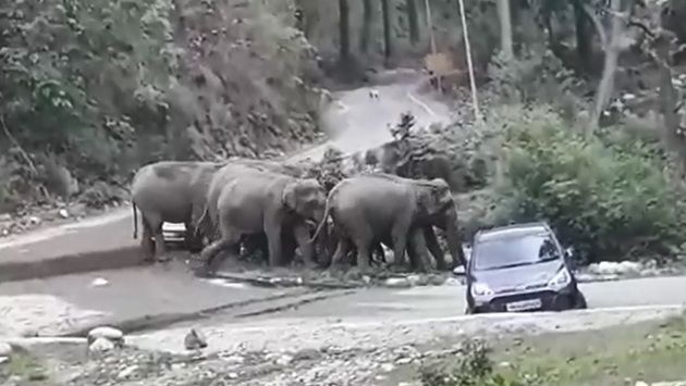 На днях стадо слонов повредило припаркованные автомобили – очевидцы сняли на видео инцидент, произошедший в районе города Рамнагара, расположенного в штате Уттаракханд на севере Индии. Слоны, решившие пересечь дорогу, посчитали, что транспортные средства, оставленные туристами на обочине, могут каким-то образом им помешать. Животные буквально растолкали машины в разные стороны, нанеся им повреждения, после чего проследовали по своим делам. Никто из присутствующих, среди которых, как утверждается, был и один из владельцев авто, не рискнул вмешаться в происходящее.