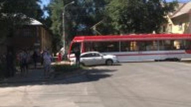 В Самаре трамвай протаранил автомобиль «Nissan»