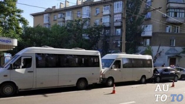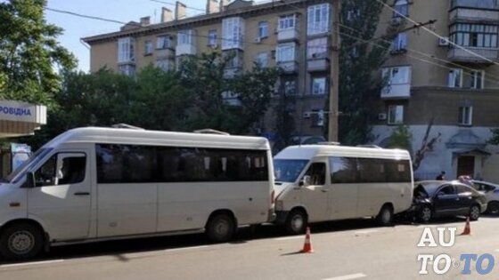 В Николаеве легковой автомобиль на высокой скорости протаранил три маршрутки