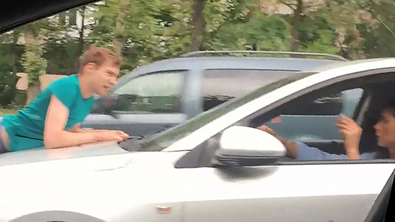 В Петербурге девушка полтора километра невозмутимо везла поклонника на капоте машины. Видео