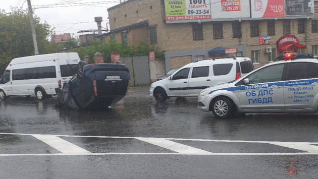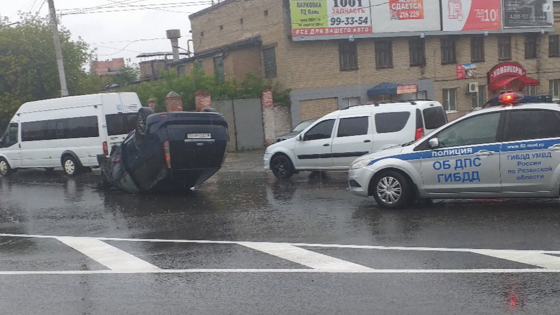 У остановки «Мясокомбинат» перевернулся автомобиль