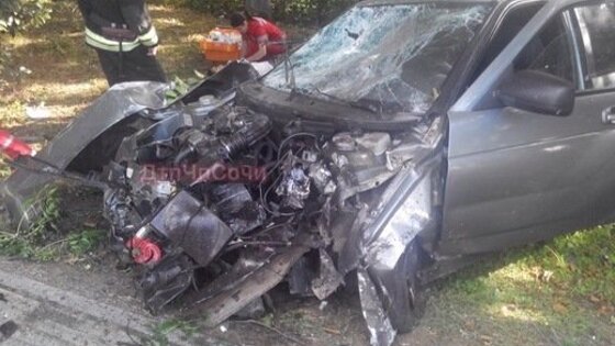 В Сочи "Лада" улетела в кювет из-за лопнувшего колеса