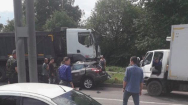 На Митрофаньевском шоссе самосвал раздавил легковой автомобиль