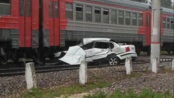 На железнодорожном переезде под Кисловодском электричка врезалась в автомобиль