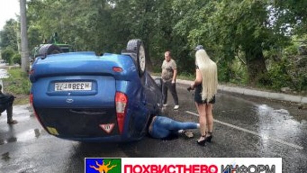 В Сызрани "Калина" перевернулась с девушкой за рулём