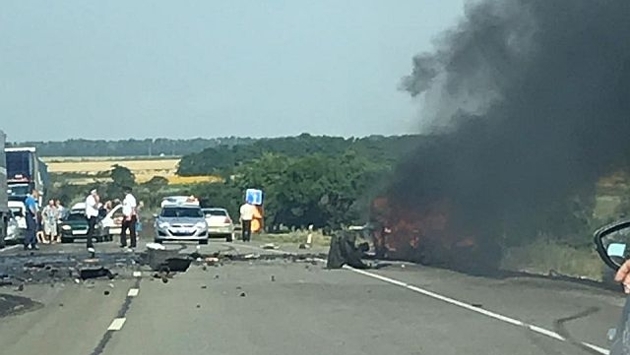 На Северном обходе в районе поселка Щепкин сегодня утром 7 июля произошла страшная авария с участием легковушки и большегруза. В Мясниковском районе на 3 километре водитель автомобиля Opel Corsa при совершении обгона не справился с управлением и на скорости врезался в фуру Scania. От сильного удара легковушка разлетелась на несколько частей и загорелась. В результате столкновения водитель Opel погиб на месте происшествия.