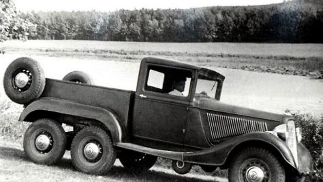 На сегодняшний день нет никаких сомнений, что для машин повышенной проходимости необходимо в обязательном порядке наличие полного привода. В 30-х гг. ХХ века инженеры, напротив, считали, что наличие на автомобиле шарниров привода управляемых колес - это чересчур дорогое удовольствие. Именно это стало причиной того, что передние колеса автомобиля еще долго не решались сделать ведущими. Когда встал вопрос о повышении проходимости машины, было принято решение добавить третью ось, получив в итоге колесную формулу 6х4. Согласно архивным документам, которые сохранились до наших дней, стало известно, что советским инженерам еще тогда стало понятно, что этот путь ведет в тупик. Начало истории. До начала Великой Отечественной войны в качестве автомобилей повышенной проходимости на территории Советского Союза рассматривались грузовики, колесная формула которых имела вид 6х4. Все имеющиеся крупные автомобильные заводы СССР, расположенные в Москве, Горьком и Ярославле выпускали грузовые автомобили такого типа марок ГАЗ-ААА, ЗИС-6, ЯГ-10. Они были приняты на вооружение Красной Армии, не имея особых замечаний со стороны государственного заказчика. Тем временем, как военным ведомствам, так и народному хозяйству был необходим автомобиль, вес которого был бы на порядок меньше, чем у ГАЗ-ААА, который весил две тонны. Вот здесь и возникли основные проблемы. Первую опытную модель машины произвели на Горьковском заводе под названием ГАЗ-ТК небольшим количеством. Главной претензией для данной модели автомобиля стало устройство подвески. Молодой сотрудник Технического Отдела завода Виталий Грачев осуществил попытку доработки данного автомобиля. Результатом стало начало в 1936 году испытаний грузового автомобиля ГАЗ-АААА. Выпуск новой машины. Как раз в это время на заводе ГАЗ была произведена смена легковой модели. На смену автомобилю ГАЗ-А был спроектирован автомобиль М-1. Грачев сразу же занялся разработкой его модификации с тремя осями, которая получила обозначение ГАЗ-21. Это произошло за 20 лет до появления автомобиля «Волга». Дальше события развивались следующим образом. Когда трехосная модель ГАЗ-21 уже была практически готова к тому, чтобы поставить ее на конвейер, в Москву неожиданно пришло письмо от Грачева. В нем он требовал в довольно решительной форме прекращения испытаний трехосного шасси, и выделения средств на производство шасси с передним приводом, которое на то время аналогов не имело. На дворе был 1937 год, и конструктора вполне могли объявить «врагом народа» за предложение такого рода, последствия чего были бы не самые радужные. Но предложение приняли, и спустя два года уже проводились испытания первого автомобиля с полным приводом советского производства - ГАЗ-61. Что же стало причиной такого хода? Неисправности ГАЗ-21. Прохождение испытаний данной моделью грузового автомобиля наглядно показало наиболее слабые места. Машина неоднократно преодолевала даже сложные дорожные участки, но частые поломки сводили это преимущество на нет. Наиболее слабым местом автомобиля оказался несущий элемент, который представлял собой переделанную раму от М-1. Существующие нагрузки приводили к трещинам не только в усилителях-косынках, установленных в месте крепления задней подвески, но также и лонжеронов. После двухмесячного испытания грузовик