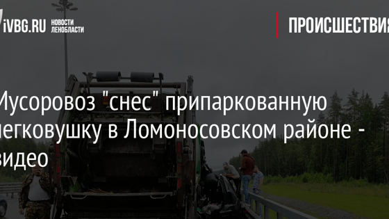 Мусоровоз "снес" припаркованную легковушку в Ломоносовском районе - видео