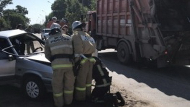 Lada попала под мусоровоз